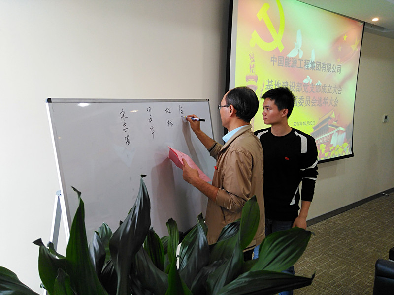基地建設部共有9名黨員,隨著業務領域不斷擴大,部門凝聚了一支老、中、青三代優秀的黨員梯隊。為了使部門黨組織更加完善,激發黨員在工作中的先鋒模范作用,基地建設部于今年6月向中國能源工程集團系統黨委提出成立黨支部的申請,隨后召開黨員大會確定支委候選人,并于10月20日選舉產生第一屆支部委員會。